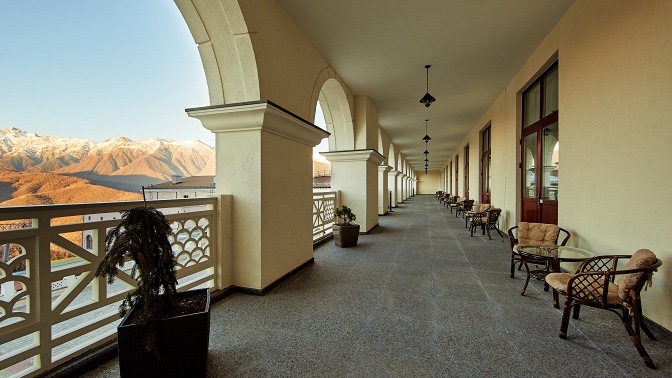 • Отель «Корпоративный центр» 5* находится на территории курорта «Красная Поляна» на высоте 960 м над уровнем моря. Его окружают живописные вершины Кавказских гор, головокружительными панорамными видами на которые вы сможете любоваться прямо из окна своего номера. Чистый воздух и неповторимая природа Сочинского национального заповедника позволяют полностью отдохнуть от суеты, сменив шумный город на умиротворяющую обстановку.